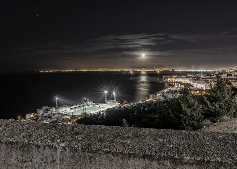 Le blanc jaunâtre de la lune tout juste sortie entière, répandant sa lumière sur une mer sculptée par le vent ; les projecteurs d’un...